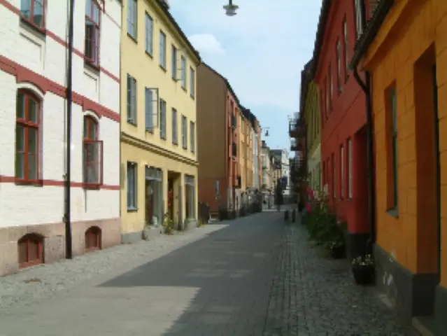 S:t Persgatan 20 i Uppsala. Vi bodde i mellanvåningen bakom de åtta fönstren till vänster i bild.