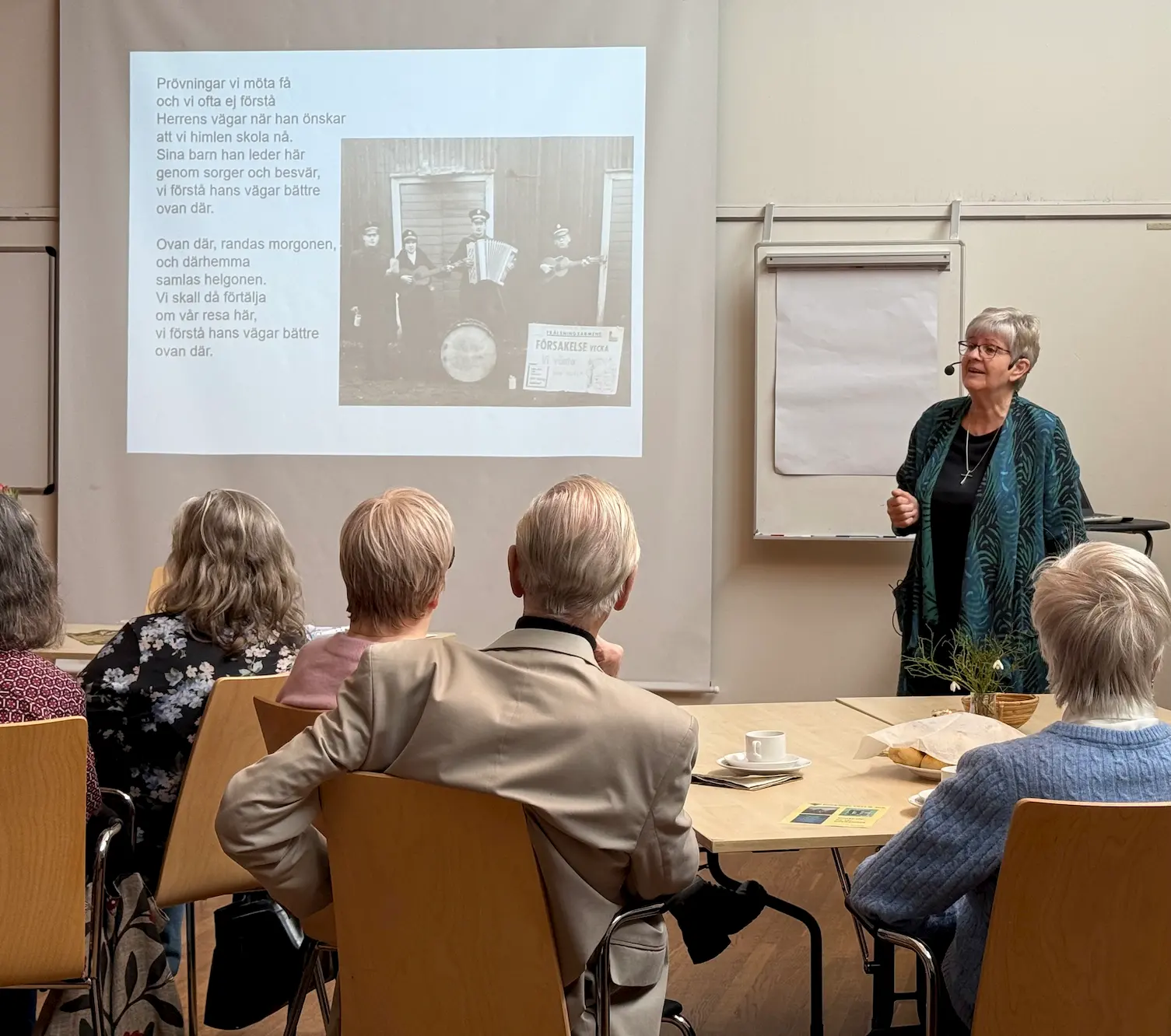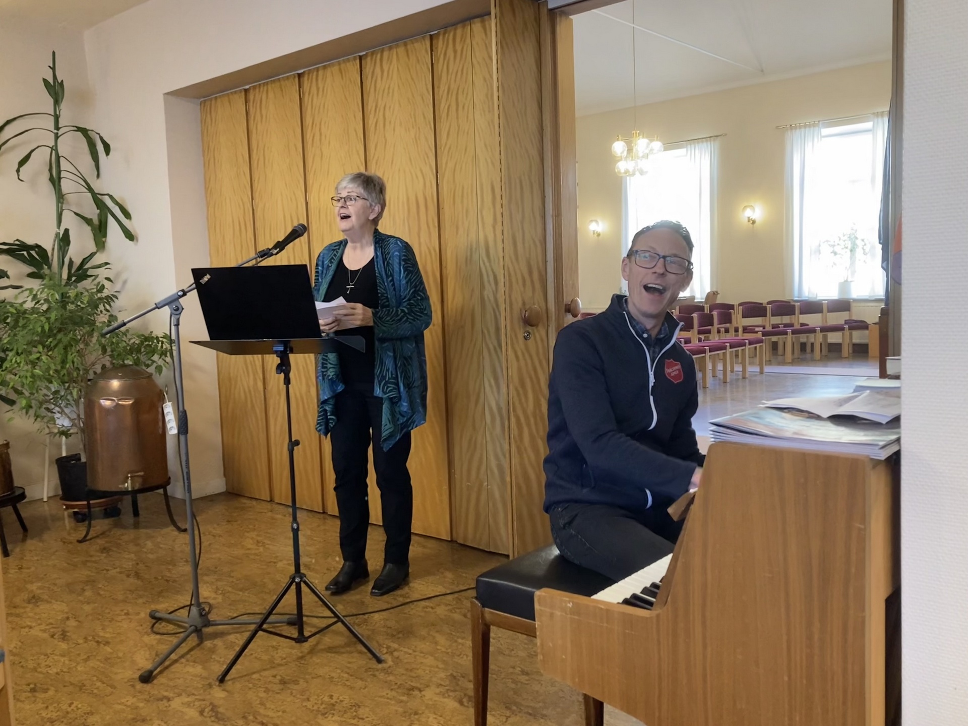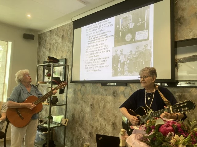 Lillian Lilliehöök hjälpte till med allsången på boksläppet i den gamla Frälsningslokalen