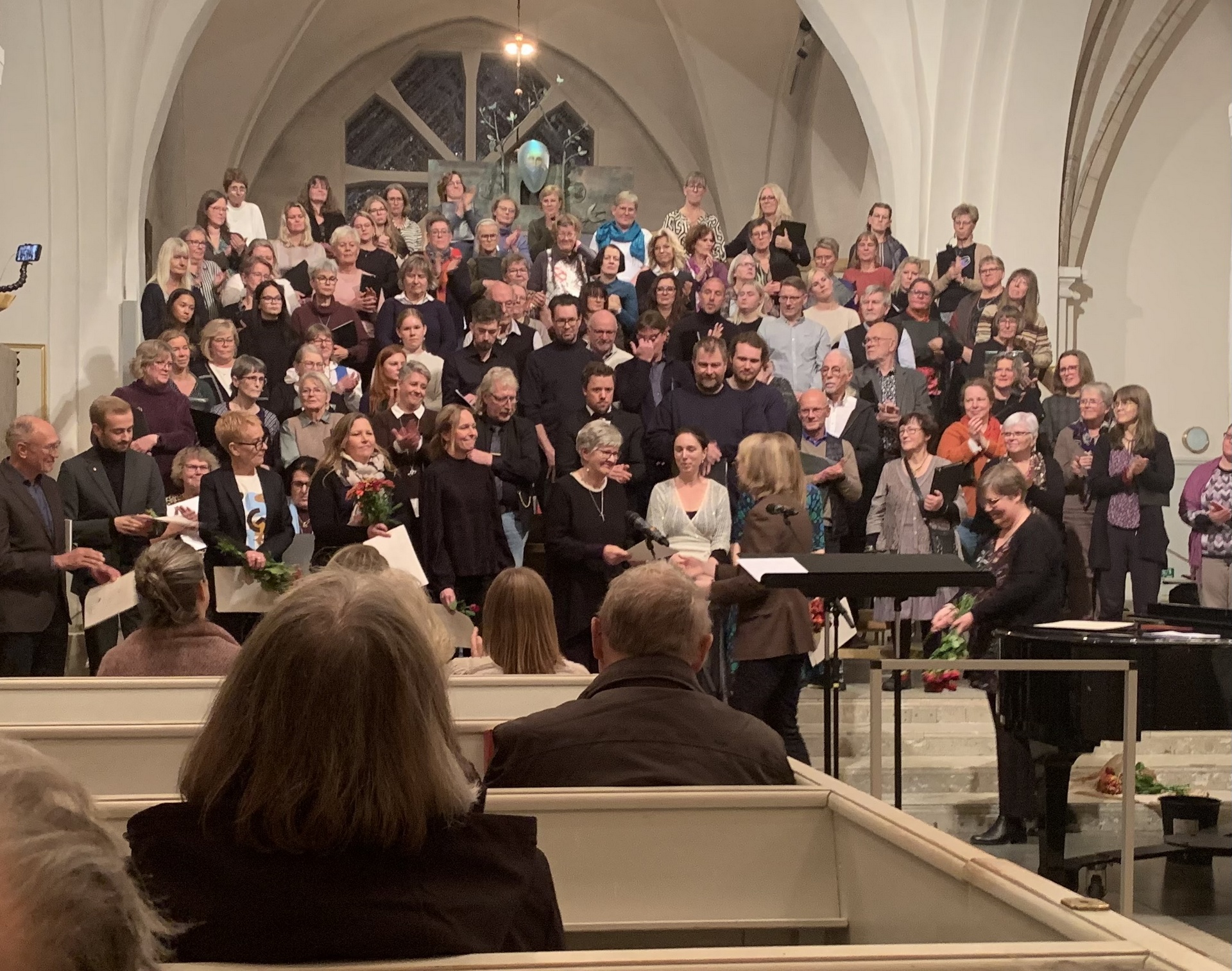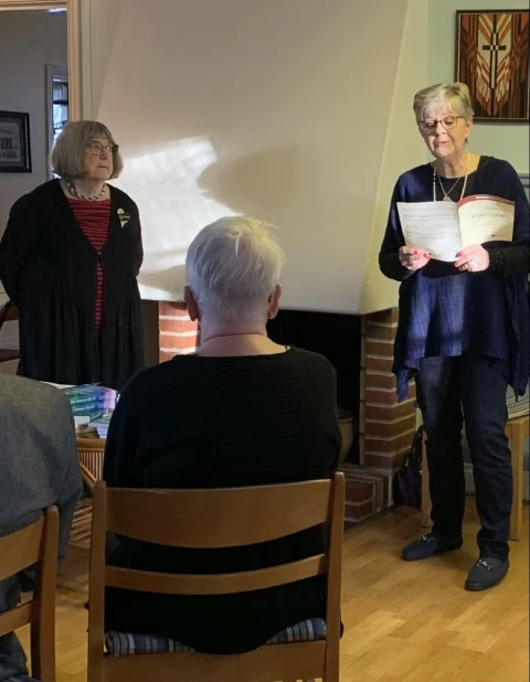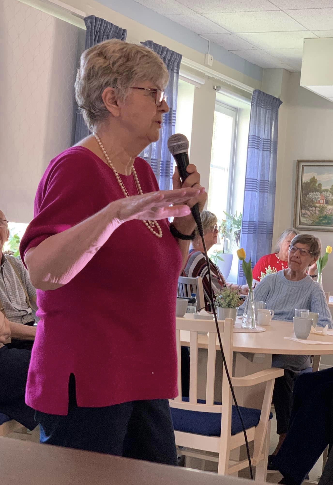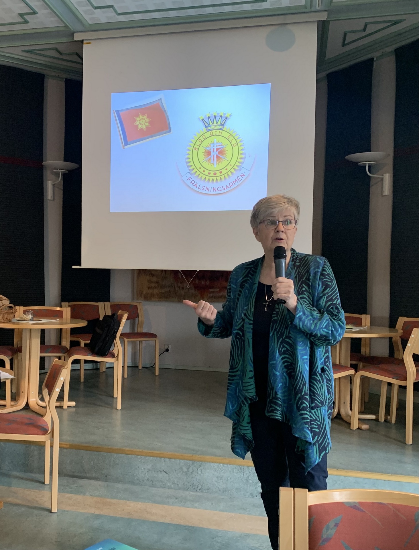 Lillian Lilliehöök hjälpte till med allsången på boksläppet i den gamla Frälsningslokalen