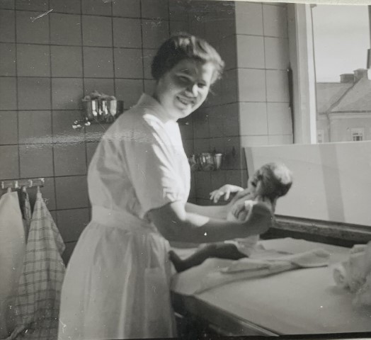 När Maria och Gustaf träffades i mars 1944, arbetade Maria i barnbadet på BB i Norrköping.